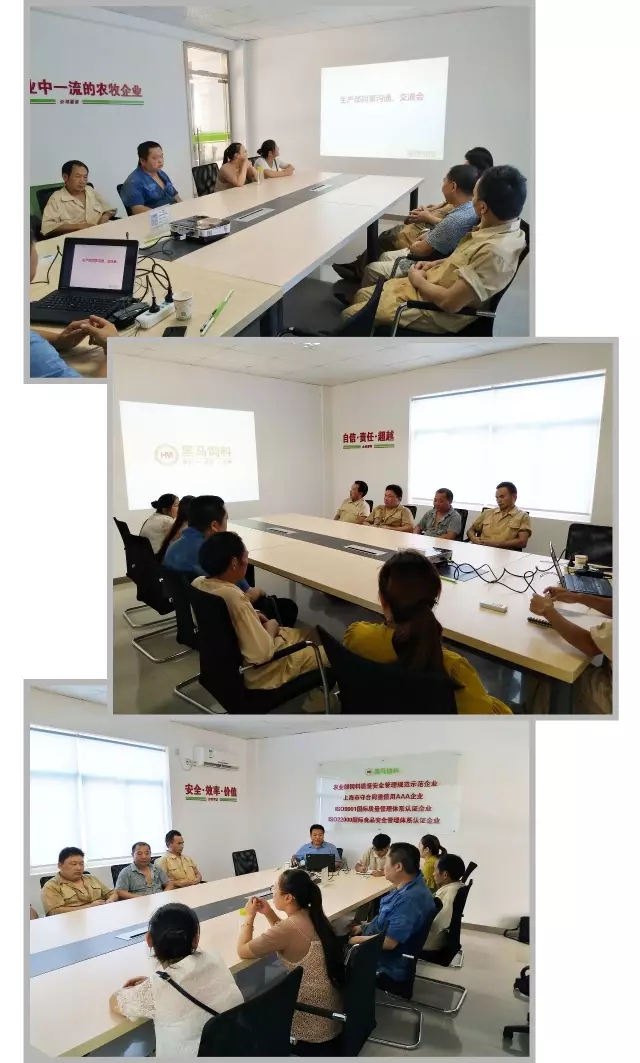 通過交流,生產部的同事們深切體會到,不管是在配料、投料、打包、中控、裝卸等哪一個崗位,他們做的每一項工作都是在為客戶提供服務。大家紛紛表示在以后的工作中會更加精益求精,嚴格按照規范的要求做好各自的本職工作,確保我們生產的每一包飼料的質量安全,讓客戶朋友們能真切感受到用黑馬飼料是放心的。