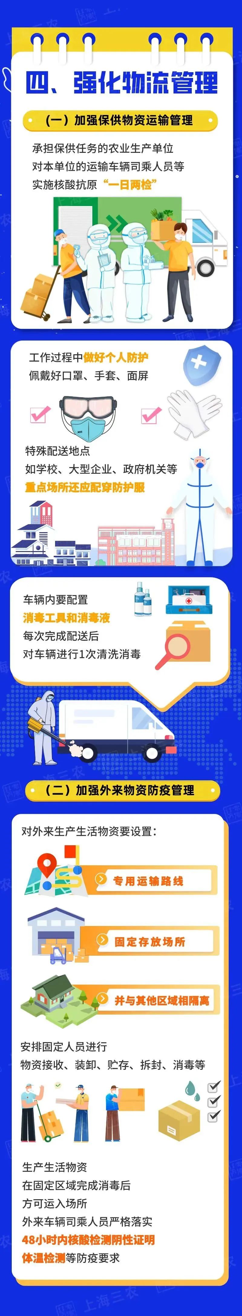 您當前所在位置:首頁 > 新聞中心 > 行業資訊 行業資訊 一圖讀懂 | 上海市農業生產單位復工復產疫情防控要點 在采取嚴格的閉環管理,做好人員消毒、環境和車輛消殺工作,并按時做好必要的核酸檢測和抗原檢測后,是可以保證產品供給安全和穩定的。 分享到:點擊次數: 更新時間:2022-04-26 17:30:18 【打印此頁】 【關閉】 上一條:五一國際勞動節 | 向最美勞動者致敬! 下一條:兩部委:畜禽養殖場所和飼料獸藥生產、屠宰加工企業采取閉環管理,獸藥、動物疫苗等物資經規范消殺后允許流通