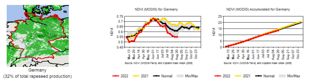 圖2:德國菜籽主產區及近年周度、和累計降水