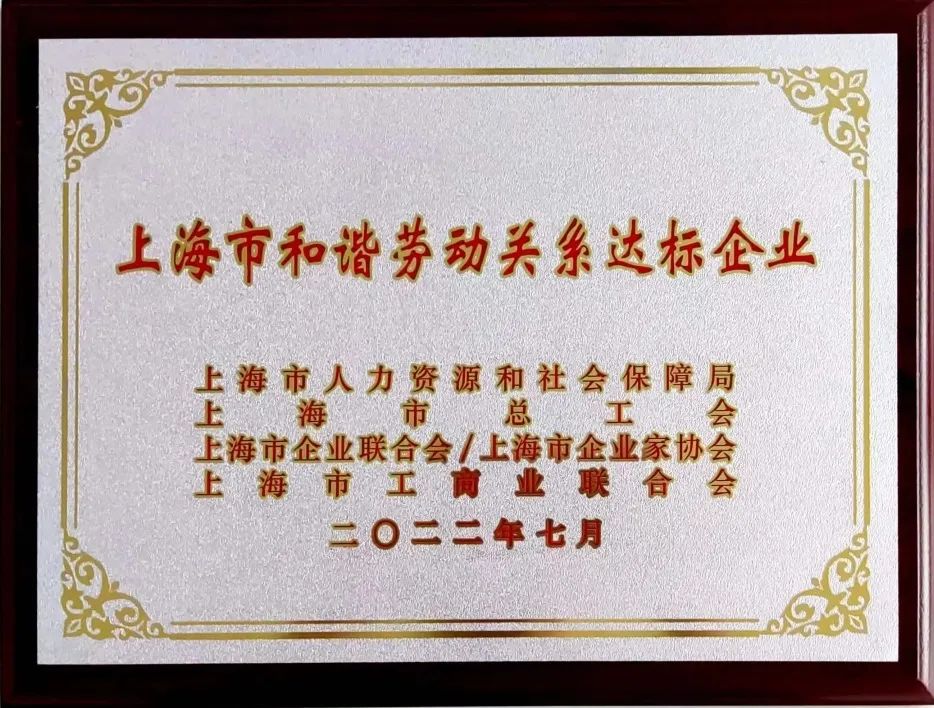 【喜報】熱烈祝賀我司榮獲“上海市和諧勞動關系達標企業”稱號