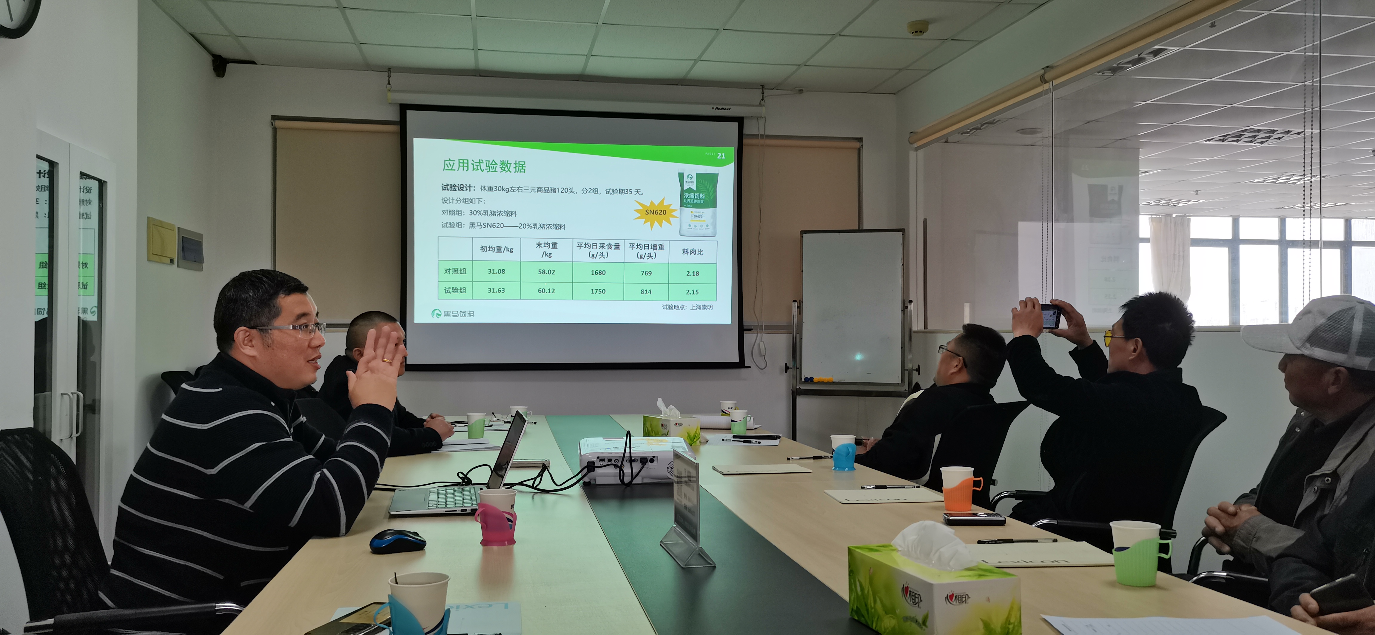 公司卞總介紹了低蛋白精準營養-點飼成金系列產品的設計理念和產品優勢,該系列產品自投放市場以來,受到廣大養殖戶朋友的認可。在講解的過程中,卞總與大家就產品在市場上的使用情況進行了細致的溝通,解答了大家在市場上遇到的問題與困惑。