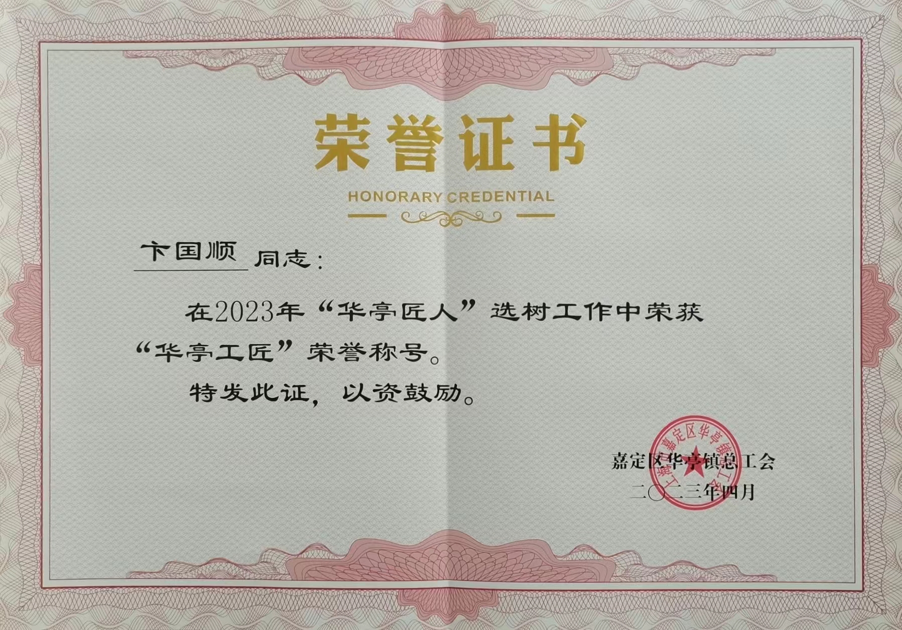我司副總經理卞國順先生和我司生產部分獲“嘉定華亭匠人”、“2022年度美麗班組”榮譽稱號
