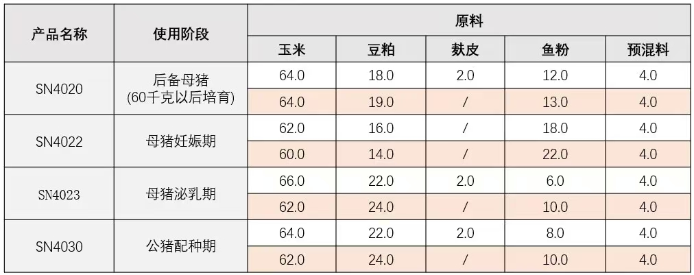 SN系列商品豬復(fù)合預(yù)混料充分體現(xiàn)了以上復(fù)合營養(yǎng)技術(shù),可提高生長速度,改善肉豬體型,提高瘦肉率。種豬復(fù)合預(yù)混料可以保持種豬更佳體況,保障種豬繁殖性能發(fā)揮,達(dá)到高產(chǎn)、優(yōu)產(chǎn)的目的。